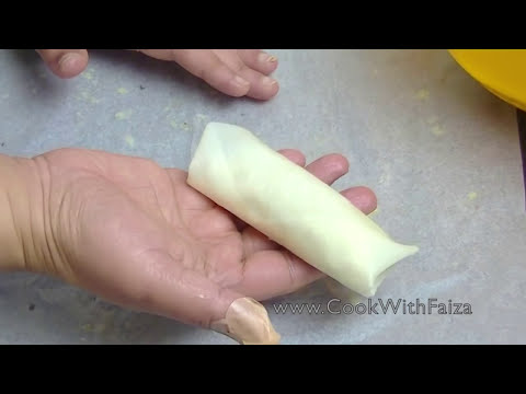 8: take on a spring roll sheet, add the mixture roll it then fold in the sides brush the edge with egg, and seal it.